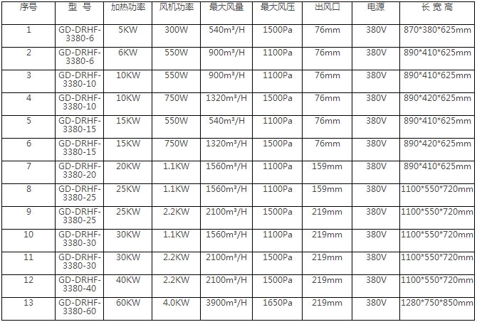 - 適用范圍:各場(chǎng)所的取暖、保溫、加熱、烘干、干燥及通風(fēng)、防凍等應(yīng)用范圍